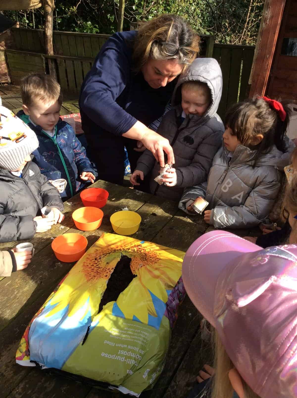 Nicola from the groundwork trust worked with us in our nursery. We helped her label the different parts of a tree and a flower. She was astounded at the knowledge and language already known and used by the children. She shared a story of a giant sunflower seed, we learned about its life cycle.