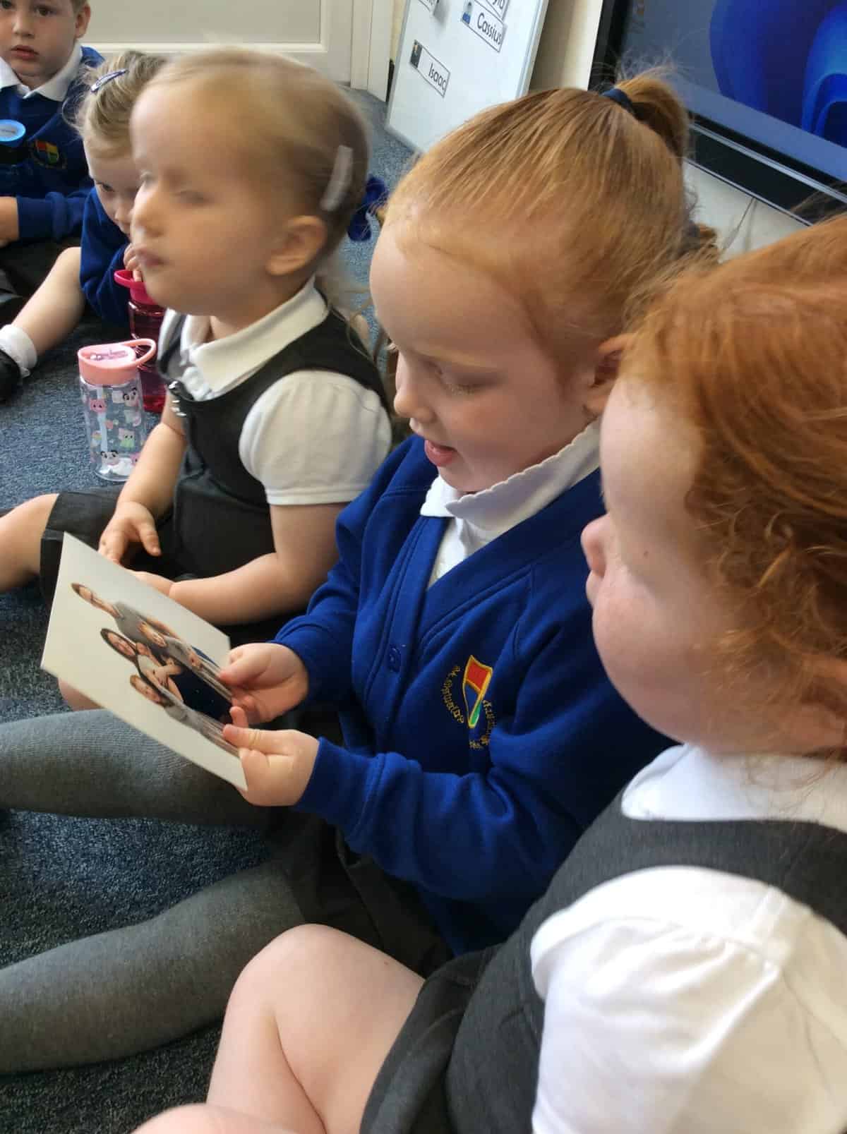 In our ‘Myself’ topic we have been learning about the importance of our special names. We have played name games including ‘bug in a rug’ and ‘hide and seek’ with our name cards.